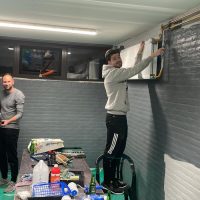 Onder het genot van een lekker kratje pils en een goed motiverend stukje muziek zijn ze vervolgens aan de slag gegaan.